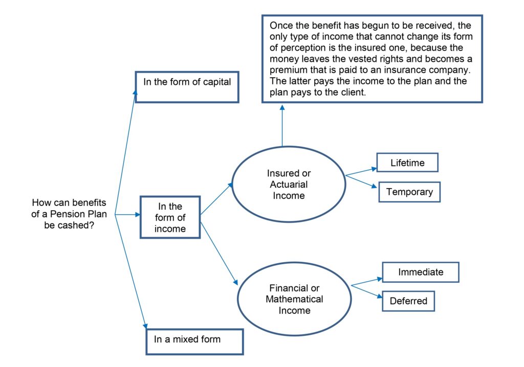 • In the form of capital: The totality of the accumulated rights is received all at once (in a single payment).