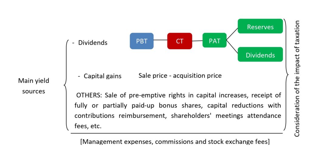 As has been shown along this chapter, the variable yield of shares occurs in different ways, in which the impact of taxation must be taken into account: