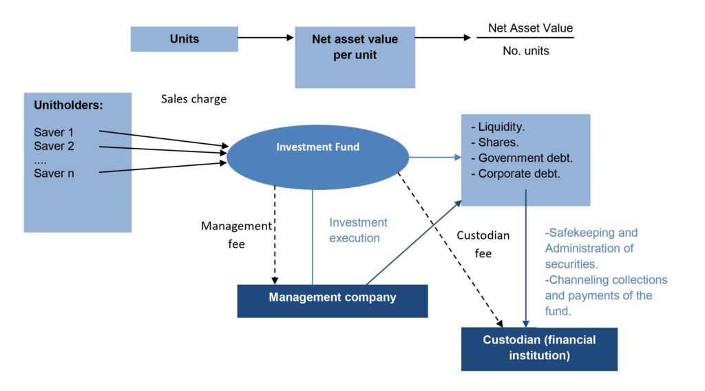 On the other hand, as can be seen in the diagram, the investment fund has to pay for the services it receives from the management company and the custodian, through management and custodian fees, respectively.
