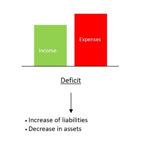 - Deficit: If the inflows are lower than the outflows, an imbalance is generated and it has to be covered. It can be done in two ways: